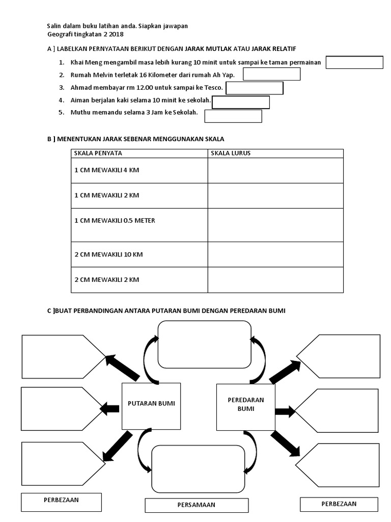 Geografi Tingkatan 2 Bab 1 Skala Dan Jarak 1 Worksheet